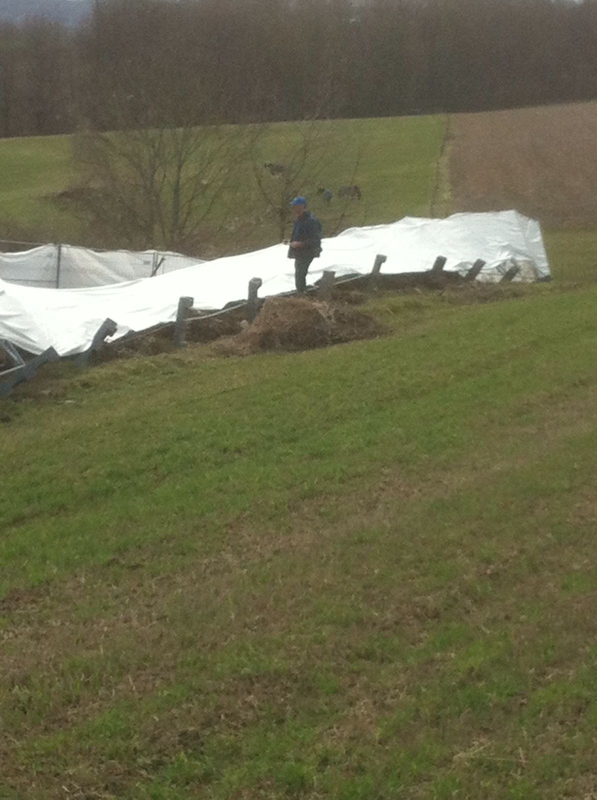 Die Situation auf dem Feldweg beim Klepferhof in Hagenthal-le-Bas ist nach den verpatzten Sanierungsarbeiten noch gefährlicher als vorher: Jetzt liegt der hochgiftige Lindan-Abfall wieder offen und frei zugänglich auf dem angeblich gerade aufgeräumten Feldweg herum. Schon 2011 bestand kein Zweifel, dass dem Beton, der zu Beginn der 1970er-Jahre auf dem Feldweg aufgebracht wurde, reiner, hochgiftiger Lindan-Abfall beigemischt worden war. Deshalb sollte die Sanierungsfirma auf dem Feldweg in erster Linie den stark kontaminierte Beton ausgraben und